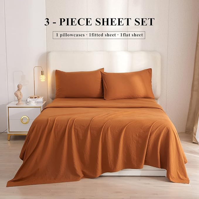 About This 【EXTRA SOFT】Our rust twin sheet set was made of 100% washed microfiber material,which offers strength and durability with...