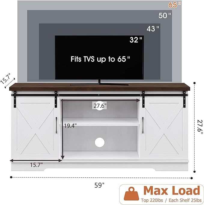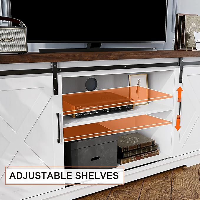 TV Stand for 65 Inch TV, Farmhouse Entertainment Center TV Media Console Table, Tall TV Stand with Storage, Barn Doors and Shelves, White Modern TV Console Cabinet Furniture for Living Room