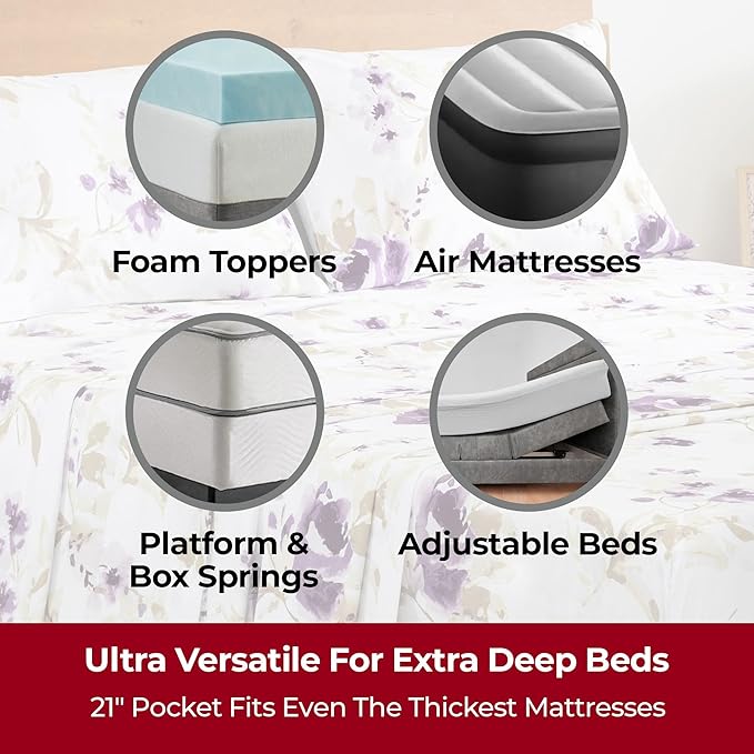 Mellanni Extra Deep California King Sheets - 4 PC Iconic Collection Bedding Sheets & Pillowcases - Luxury, Ultra Soft, Cooling Bed Sheets - Extra Deep Pocket up to 21 inch (Cal King, Madison Purple)