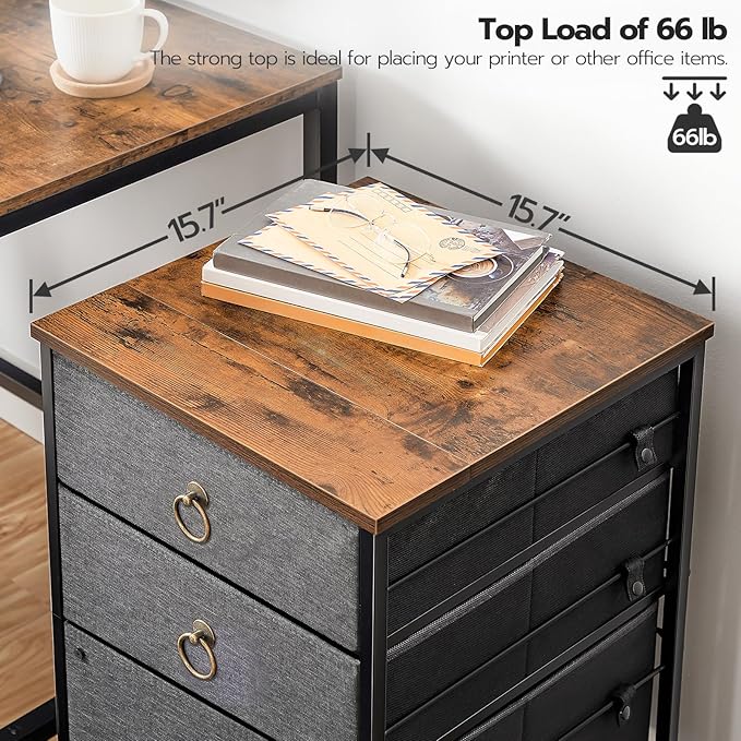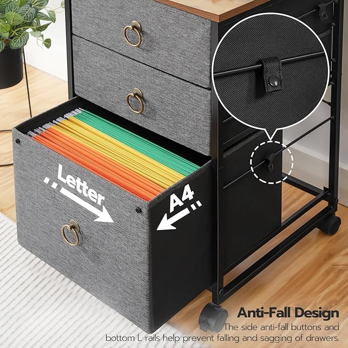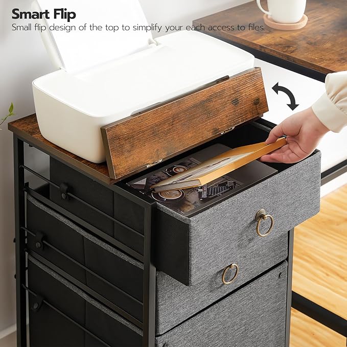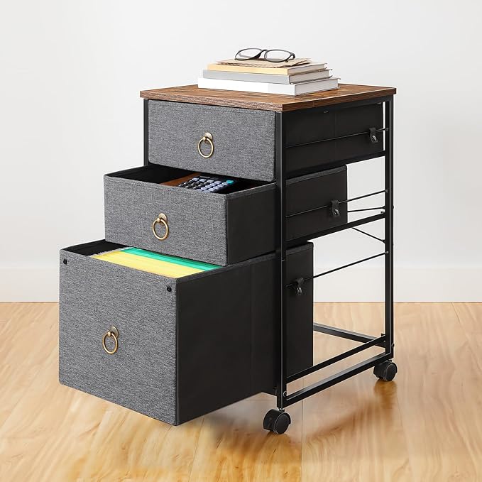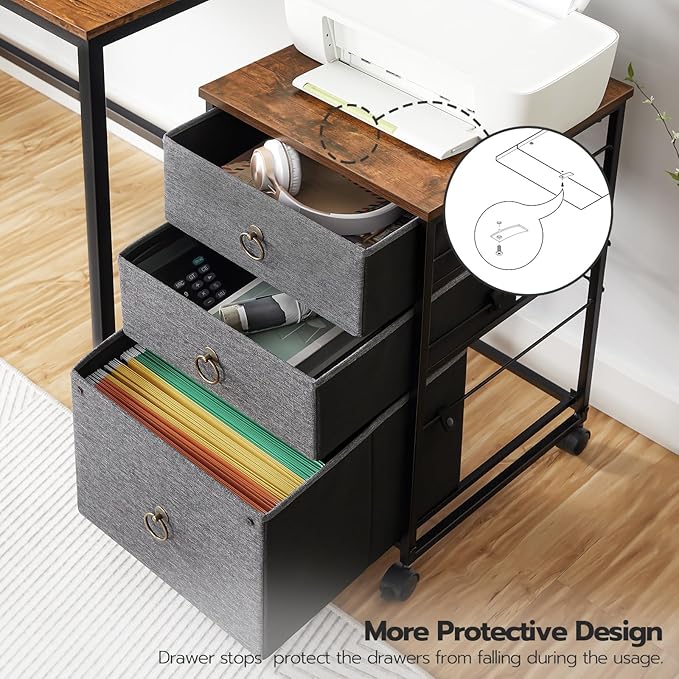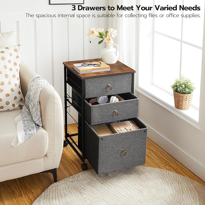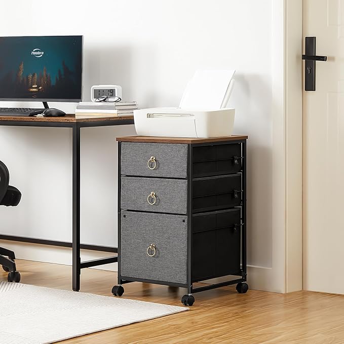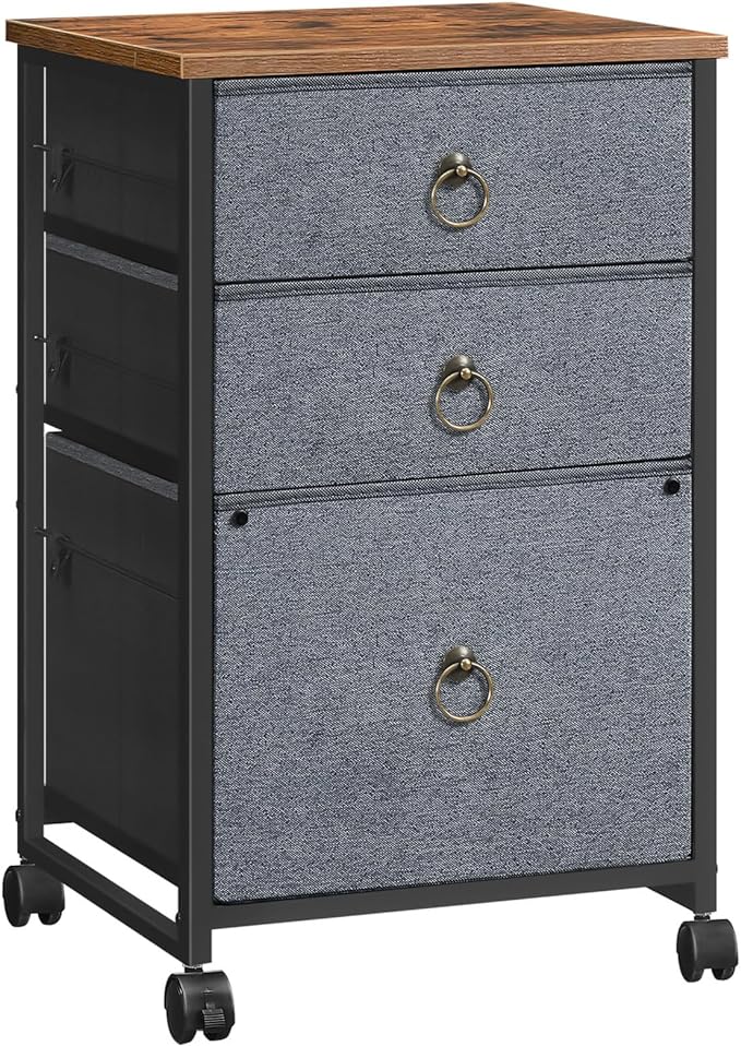 HOOBRO 3-Drawer Mobile File Cabinet, Vertical Filing Cabinet, Office Cabinet, Filing Cabinet for Home Office, Rolling Printer Stand, A4/Letter-Sized, Nonwovens Drawer, Rustic Brown and Gray BFG30WJ01