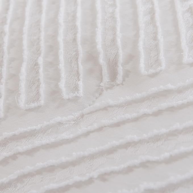 Queen Comforter Set, White Boho Bedding Comforter Sets Extra Fluffy, Tufted Design Bed Comforter 3 Pieces (1 Comforter, 2 Pillowcases)