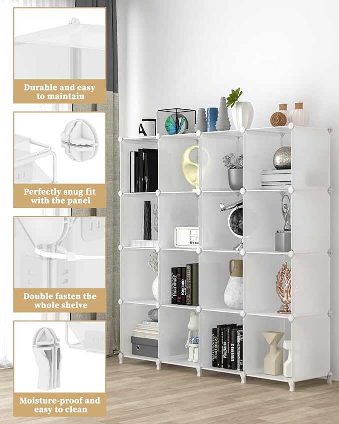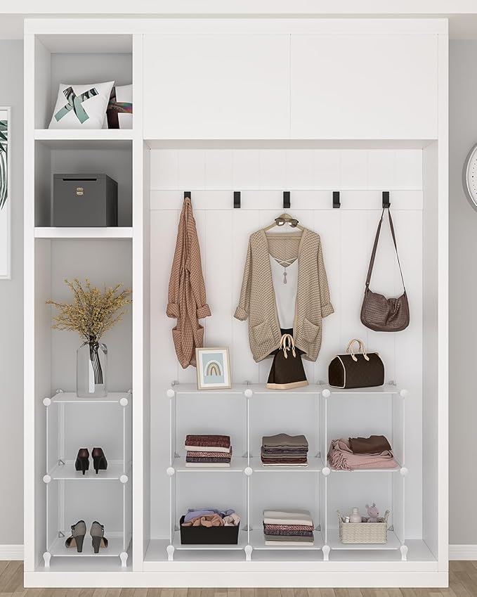 FUNLAX Cube Storage, 6 Storage Cubes Closet Organizers and Storage Portable Cube Storage Organizer Plastic Bookshelf Bookcase for Study Room, Bedroom, Office, White