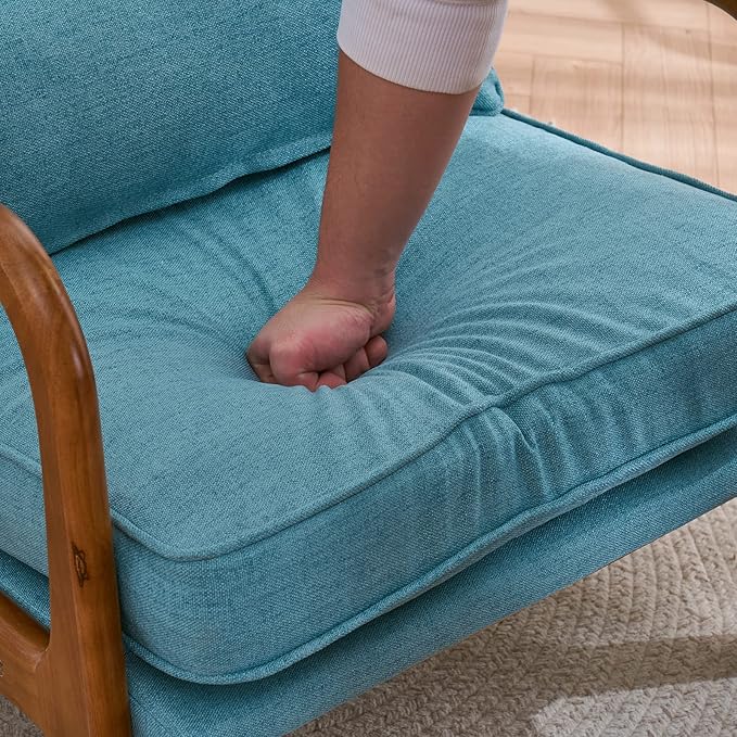 Bonnlo Teal Accent Chairs Set of 2, Upholstered Mid Century Modern Lounge Chairs Reading Chairs Side Sitting Chair Solid Wood Farmhouse Armchairs for Living Room, Bedroom, Guest Room