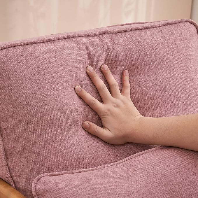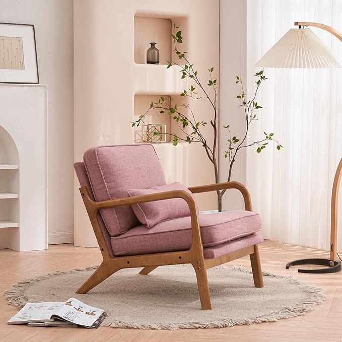 Bonnlo Pink Accent Chairs Set of 2, Upholstered Mid Century Modern Lounge Chairs Reading Chairs Side Sitting Chair Solid Wood Farmhouse Armchairs for Living Room, Bedroom, Guest Room