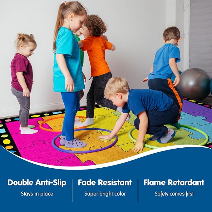 Booooom Jackson Large Classroom Rug Colorful Puzzle Classroom Carpet 7'5"x13'Area Rug with Non-Slip Backing School Classroom Seating Carpet Elementary(shense-4023)