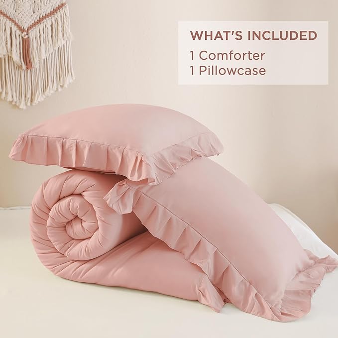 Andency Blush Ruffle Comforter Set, 2 Pieces Kids Comforter Set Twin(66x90Inch), Farmhouse Shabby Chic Comforter Set, Soft Microfiber Kids Bedding Set