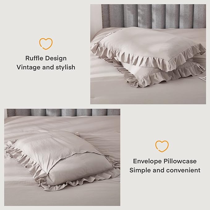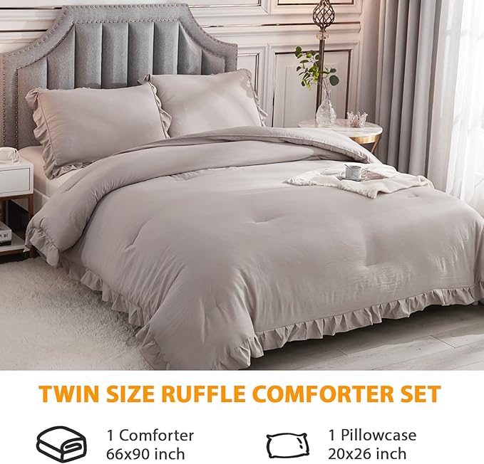 Andency Wheat Ruffle Comforter Set, 2 Pieces Kids Comforter Set Twin(66x90Inch), Farmhouse Shabby Chic Comforter Set, Soft Microfiber Kids Bedding Set