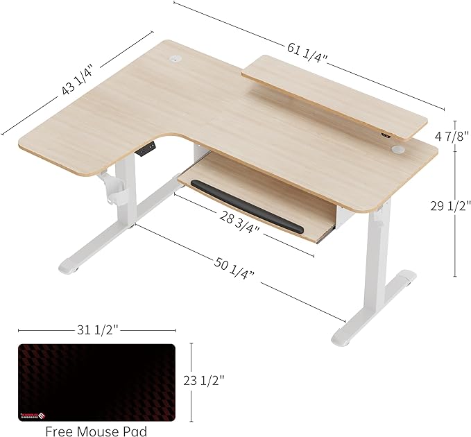 About This 【Large L-Shaped Desktop】The l shaped standing desk has a Spacious 61” wide surface plus 20" extension, big enough...