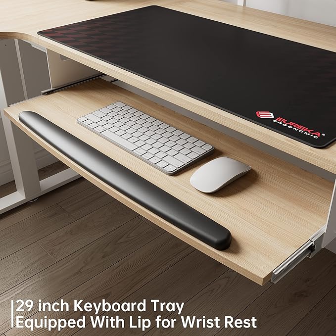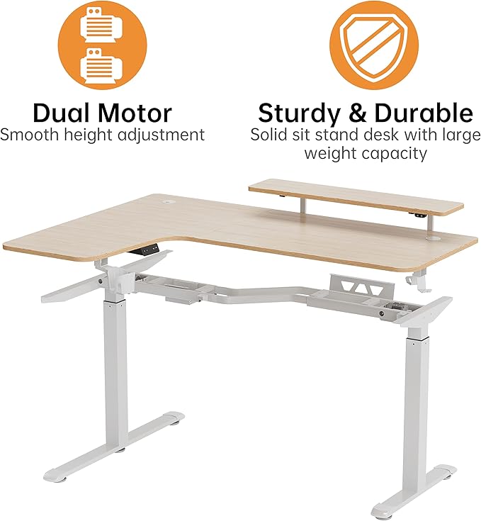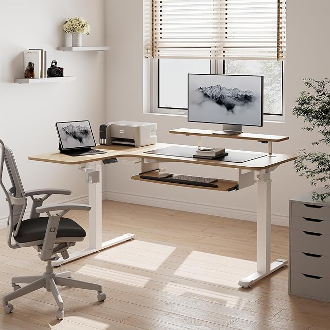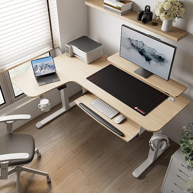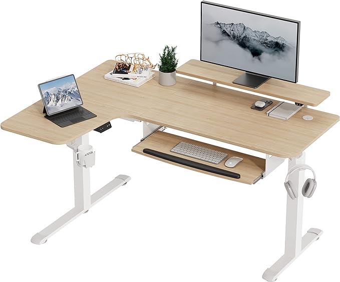 EUREKA ERGONOMIC Standing Desk Adjustable Height 61" Electric Sit Stand Computer Desk L Shaped with Keyboard Tray,Monitor Stand &LED, Dual Motor Memory Presets Sit to Desk Adjustable Desk, Left/Maple