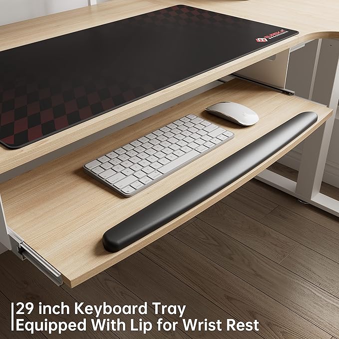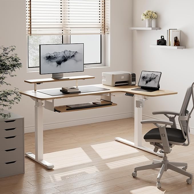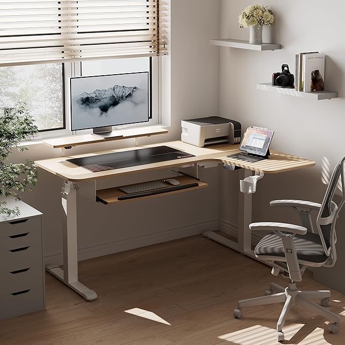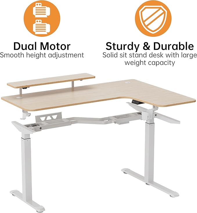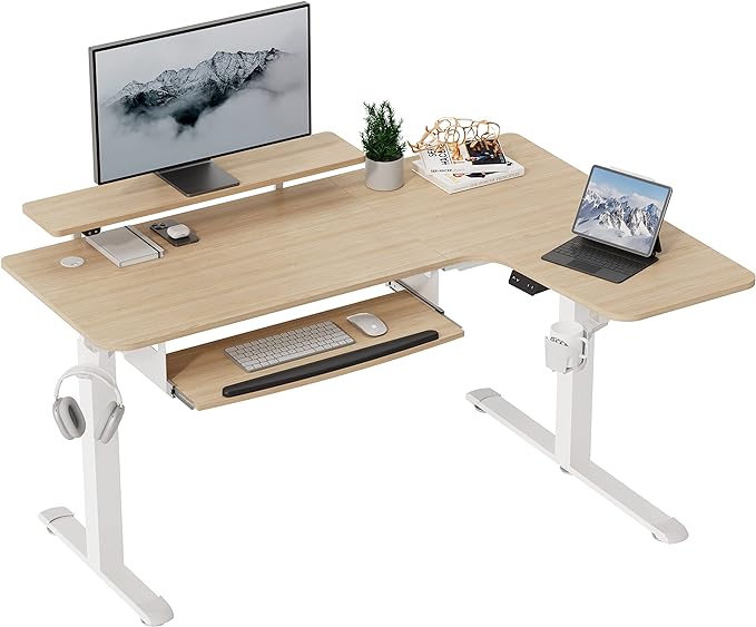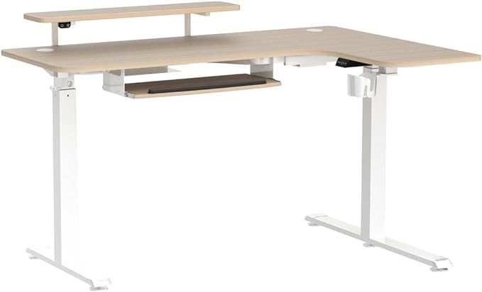 EUREKA ERGONOMIC Standing Desk Adjustable Height 61" Electric Sit Stand Computer Desk L Shaped with Keyboard Tray,Monitor Stand &LED, Dual Motor Memory Presets Sit to Desk Adjustable Desk, Right/Maple