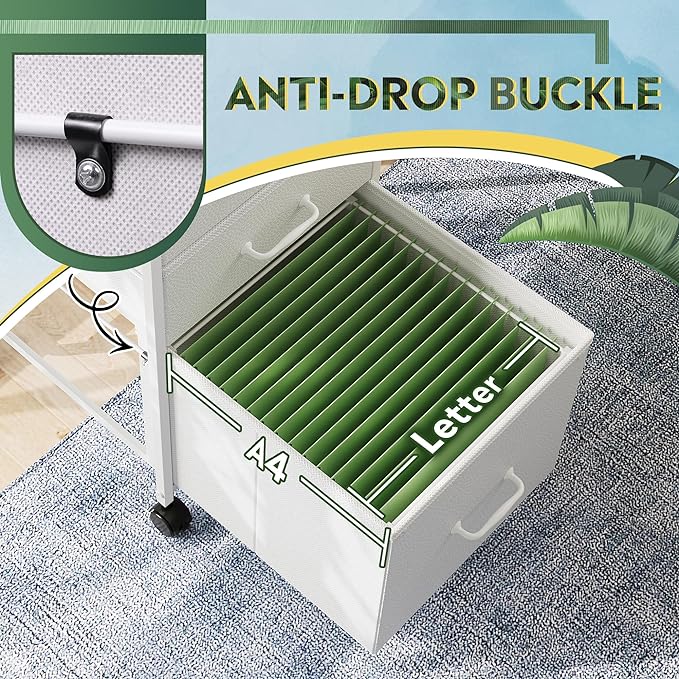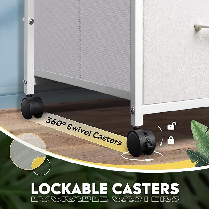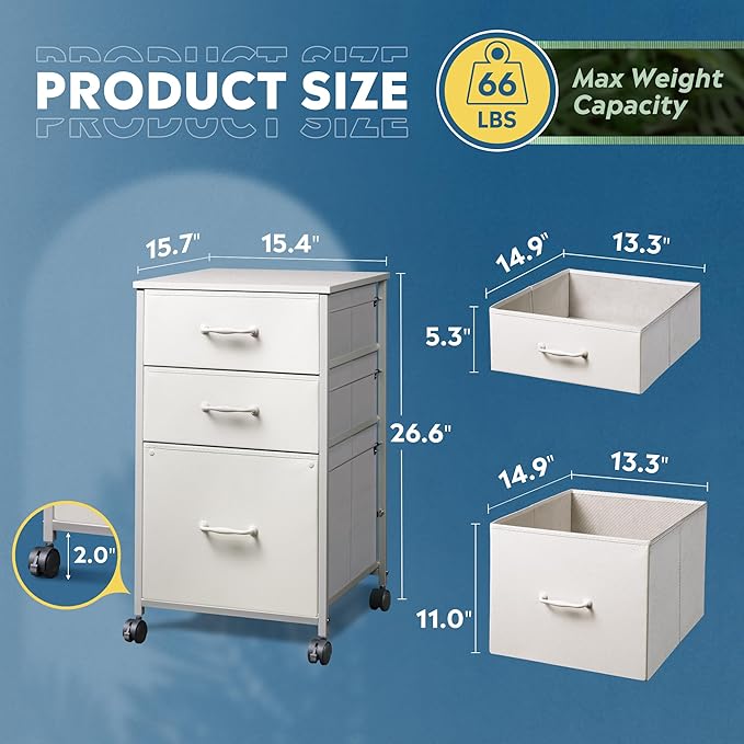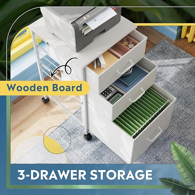 DEVAISE Mobile File Cabinet, Rolling Printer Stand with 3 Drawers, Fabric Vertical Filing Cabinet fits A4 or Letter Size for Home Office, White