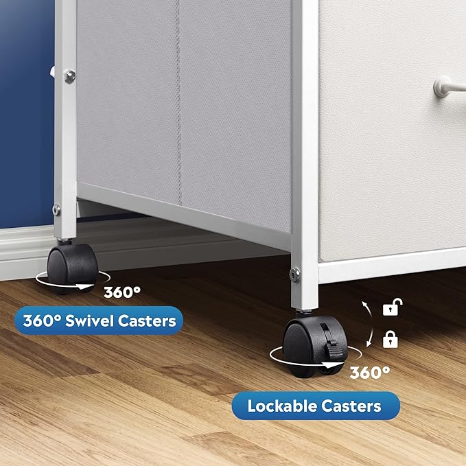 DEVAISE 3 Drawer Mobile File Cabinet, Rolling Printer Stand with Open Storage Shelf, Fabric Lateral Filing Cabinet fits A4 or Letter Size for Home Office, White