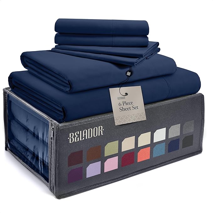BELADOR Silky Soft Queen Sheet Set - 6 Piece Bed Sheets for Queen Size Bed, Secure-Fit Deep Pocket Sheets with Elastic, Breathable Hotel Sheets & Pillowcase Set, Wrinkle Free Oeko-Tex Sheets