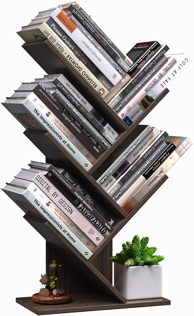 About This ❤【Classic Retro Design】The bookshelf features a distinctive Retro Tree Shape Design, giving it a timeless and classic appearance....