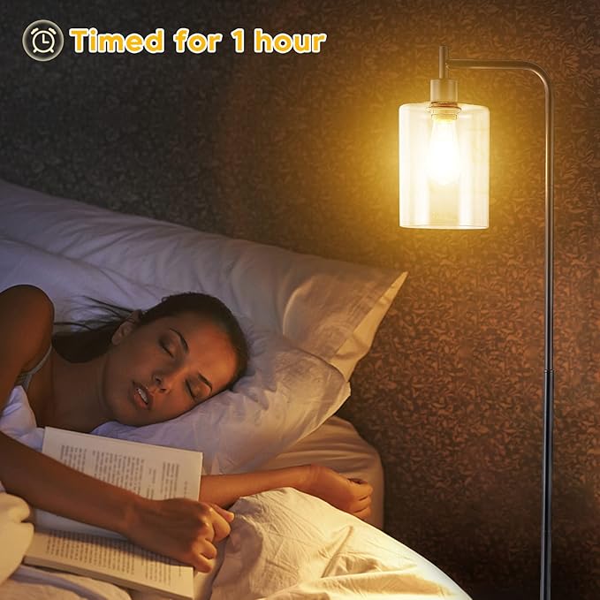 Litake Industrial Floor Lamp, Dimmable Modern Standing Lamp with Clear Glass Shade, Black Tall Lamp with Remote & Foot Control, LED Bright Corner Lamp with 6W Bulb for Living Room Bedroom Office