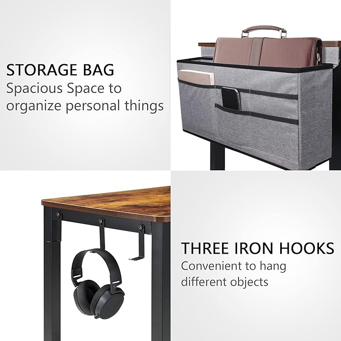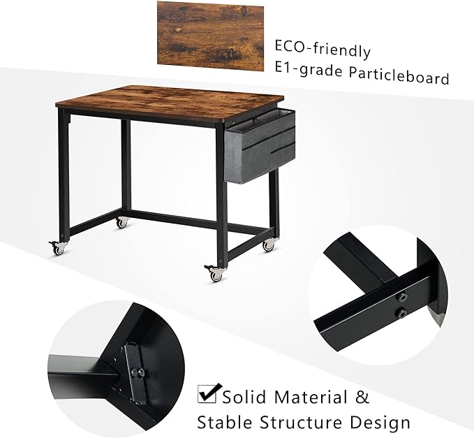 About This MINIMALIST DESIGN: Simple and modern AHB rolling computer desk features industrial rustic brown tabletop and metal frame. It...