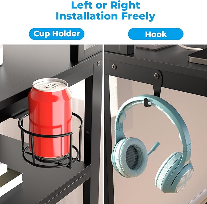 GreenForest Computer Desk with USB Charging Port and Power Outlet,Reversible Small Desk with Monitor Stand and Storage Shelves for Home Office,40 in Work Desk with Cup Holder Hook,Black