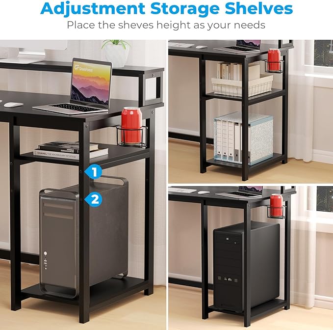 GreenForest Computer Desk with USB Charging Port and Power Outlet, Reversible Home Office Desk with Monitor Stand Storage Shelves for Small Space,47 in Work Desk with Cup Holder Hook,Black