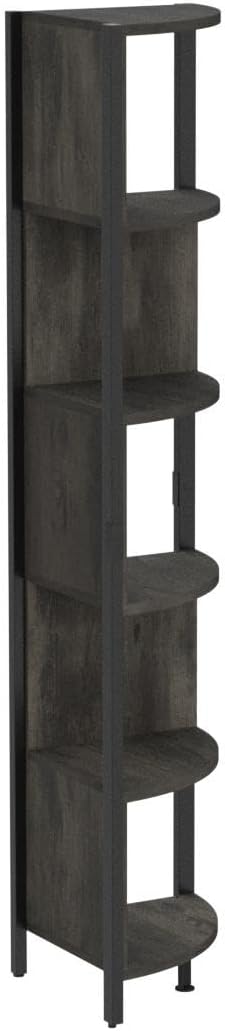 About This Gray Great for small spaces: This 6-tier corner book shelf combines the floating zigzag s-shaped bookshelf with steel...