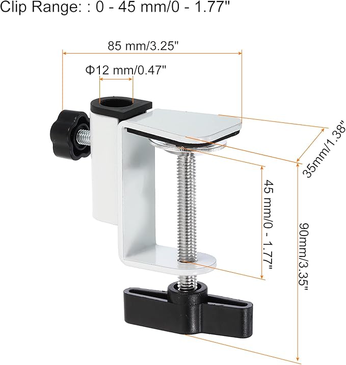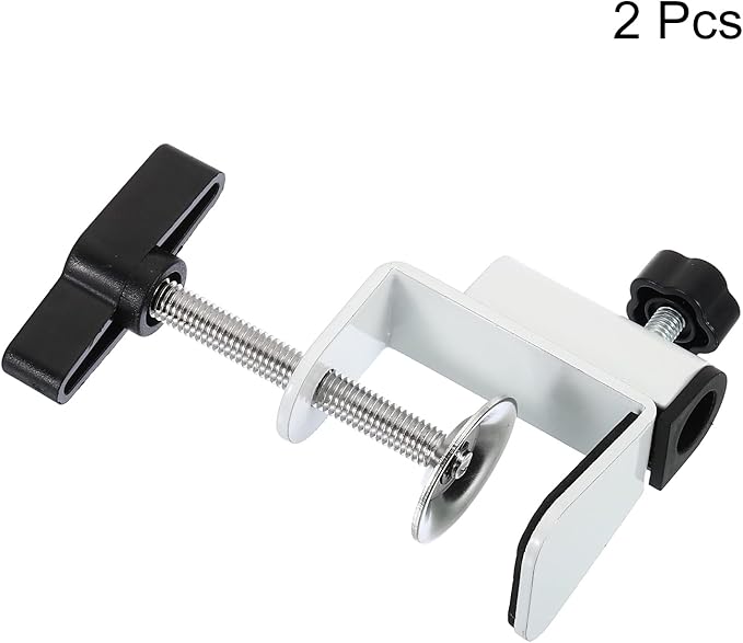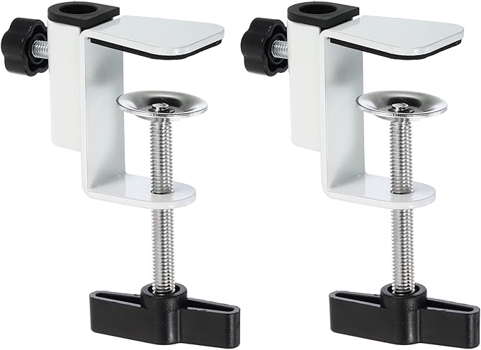 PATIKIL 0.49" Hole Dia. Desk Clamp, 2 Pcs Universal C-Clamp Base with Adjustable Screw for Microphone Mic Arm Table Lamp Mount Holder, White