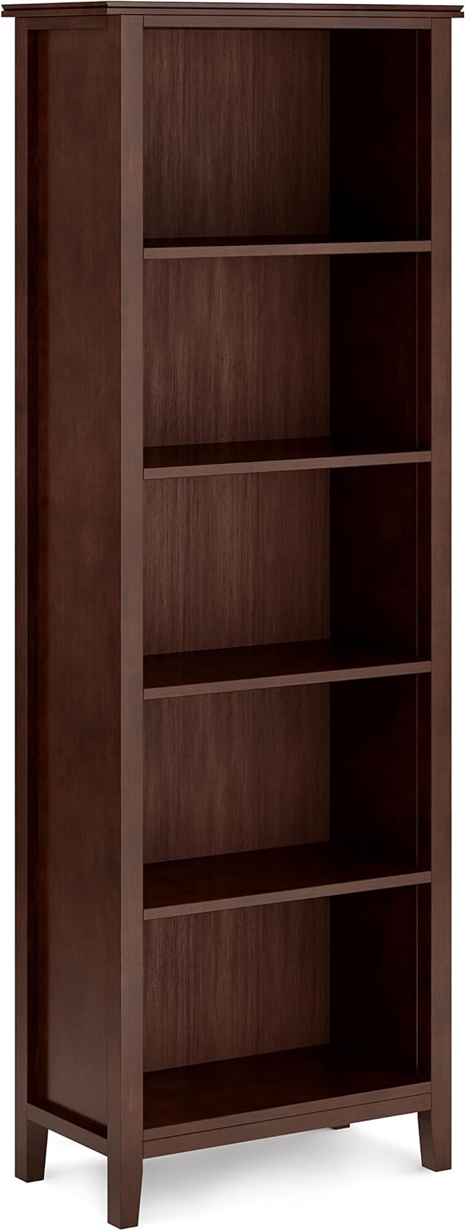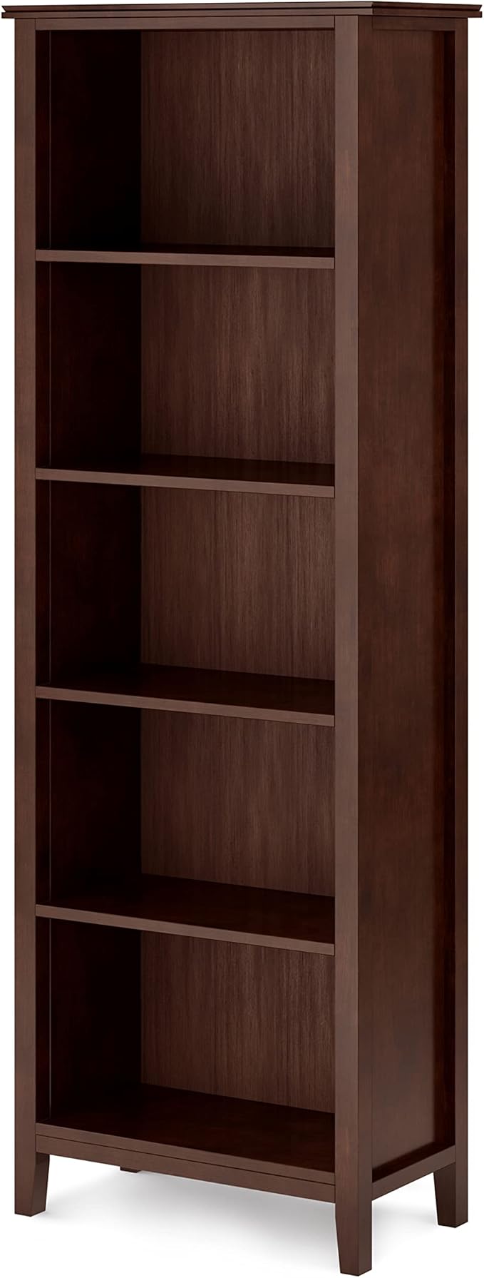 SIMPLIHOME Artisan SOLID WOOD 26 Inch Contemporary 5 Shelf Bookcase in Russet Brown, For the Living Room, Study Room and Office