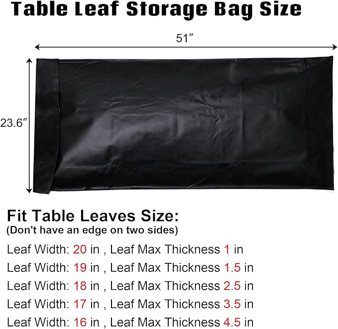Table Leaf Storage Bag Padded 2 Pack, Heavy Duty Dining Table Leaf Bag, Extra Thick Flannel Backing Dining Table Cover Protector, 51" Lx24''W, Water-Resistant Scratch Resistant, Black