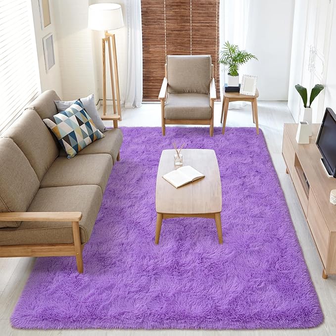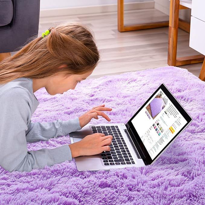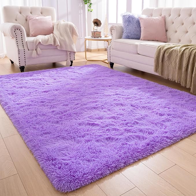 Softlife Ultra Soft Fluffy Area Rugs for Bedroom, Girls and Boys Room Kids Room Nursery Rug, 6 x 9 Feet Shaggy Fur Indoor Plush Modern Floor Carpet for Living Room Christmas Decor, Purple
