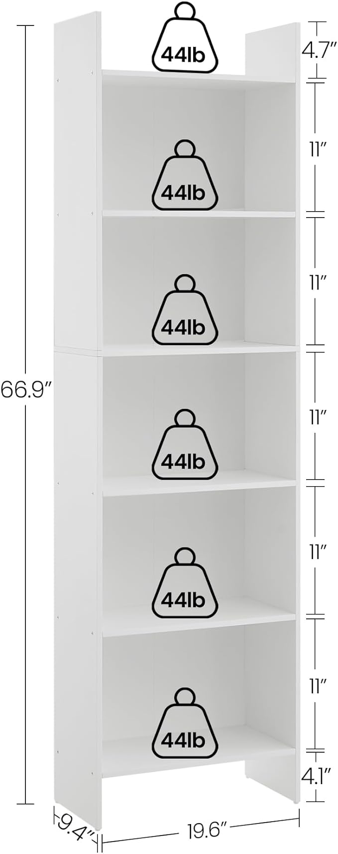 6-Tier Bookshelf, 66.9 Inches Floor Standing Bookcase, Display Storage Shelf, Corner Shelf, Home Decor Furniture for Home Office, Living Room, Bedroom, White 01103XBC