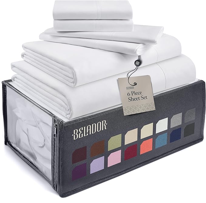 BELADOR Silky Soft Queen Sheet Set - 6 Piece White Bed Sheets for Queen Size Bed, Secure-Fit Deep Pocket Sheets with Elastic, Breathable Hotel Sheets & Pillowcase Set, Wrinkle Free Oeko-Tex Sheets
