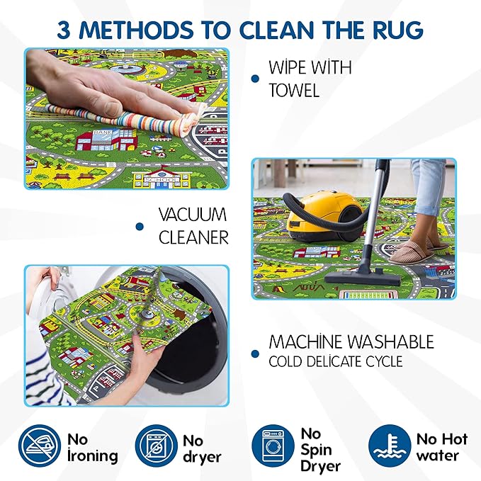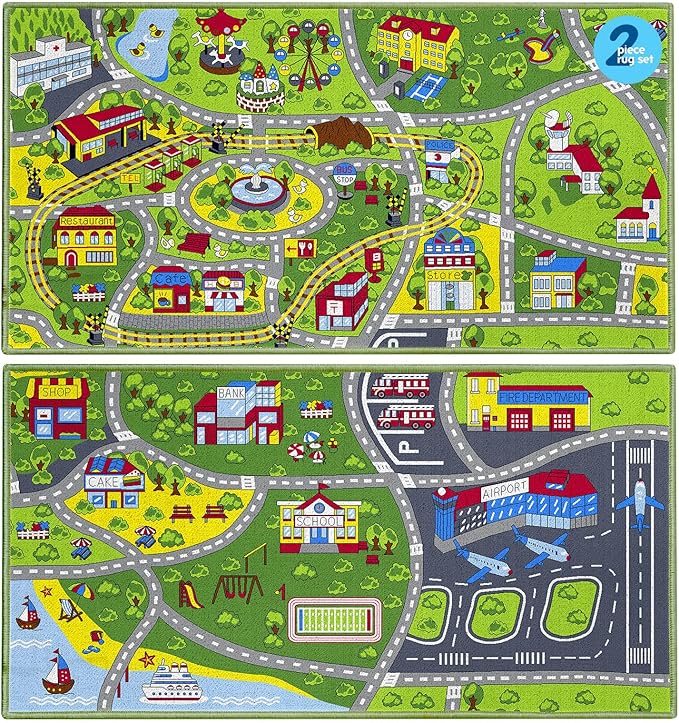 Booooom Jackson Pack 2 Train Car Rugs for Toy Cars,Car Mat,Road Rug,Kids Car Carpet Playmat Rug,Kids Car Rug Play Mat,Fun Car Play Area Rug,Non Slip Kids Car Play Rug for Playroom Bedroom