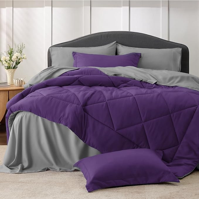 Bedsure Purple California King Comforter Set - 7 Pieces Reversible Bed Set Bed in a Bag California King with Comforters, Sheets, Pillowcases & Shams, California King Bedding Sets