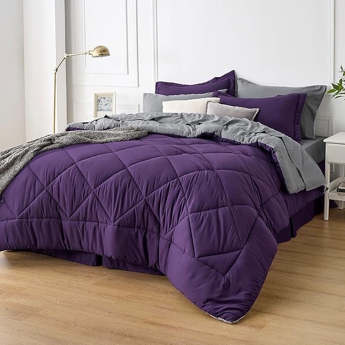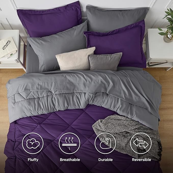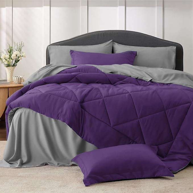 Bedsure Purple Twin Comforter Sets - 5 Pieces Reversible Twin Bedding Sets for College, Purple Extra Long Bed Set Twin with Comforters, Sheets, Pillowcase & Sham