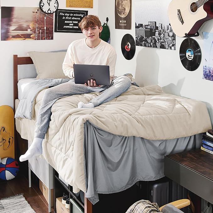 Bedsure Beige Twin Comforter Sets - 5 Pieces Reversible Twin Bedding Sets for College, Beige Extra Long Bed Set Twin with Comforters, Sheets, Pillowcase & Sham