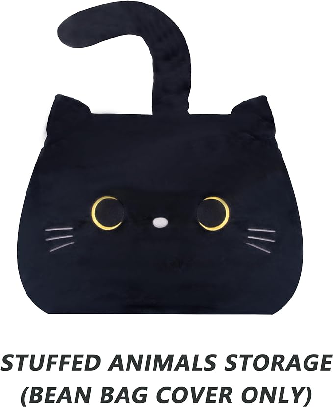 Stuffed Animal Storage Bean Bag Chair Cover for Kids Black Cat Beanbag Chair for Girls Large Size Toy Organizer Cover Only Without Filling