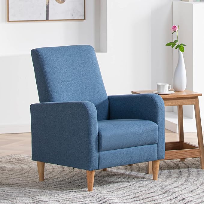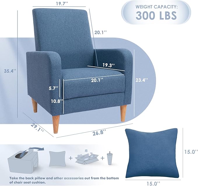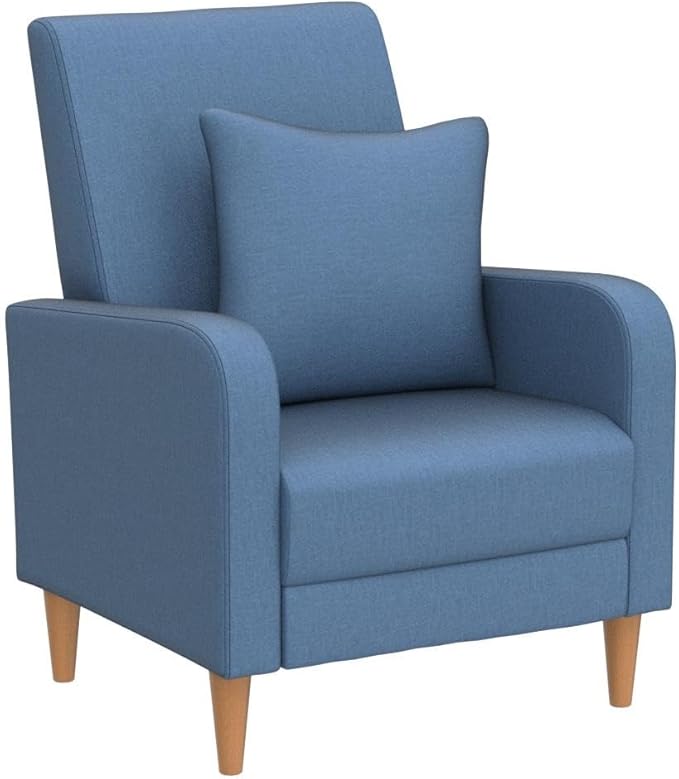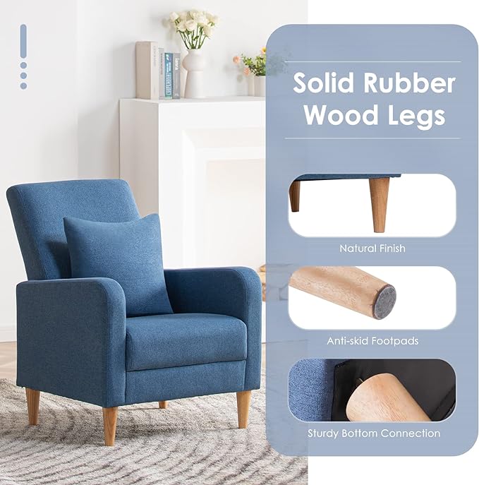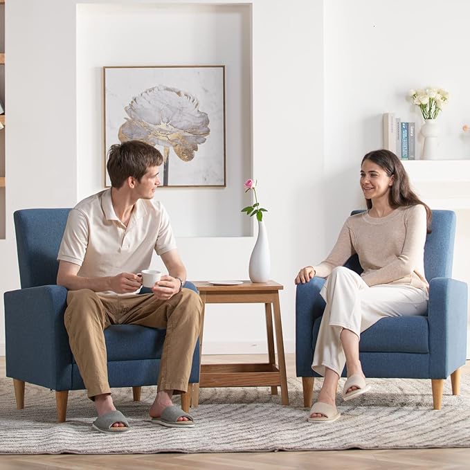 COLAMY Modern Accent Living Room Chairs Set of 2, Upholstered Fabric Armchair Reading Side Chair, Single Sofa with Back Pillow and Wood Legs, Blue