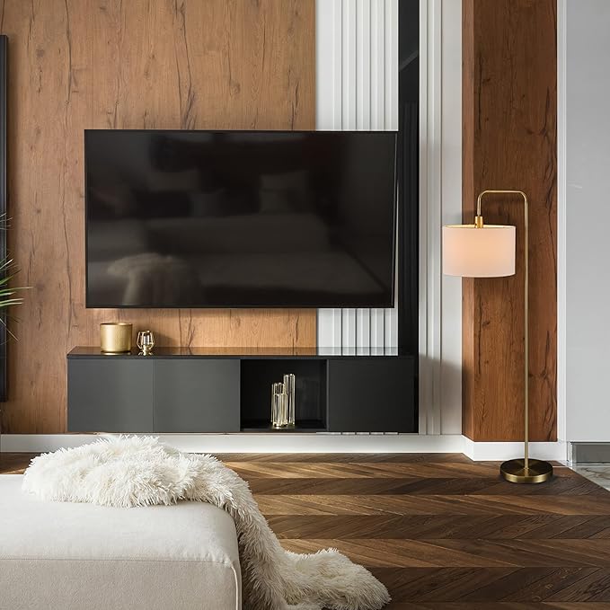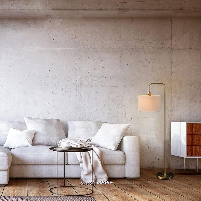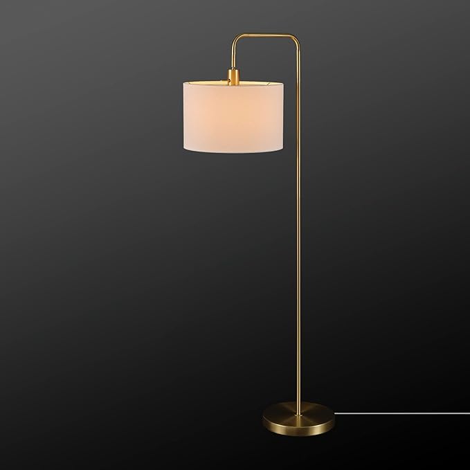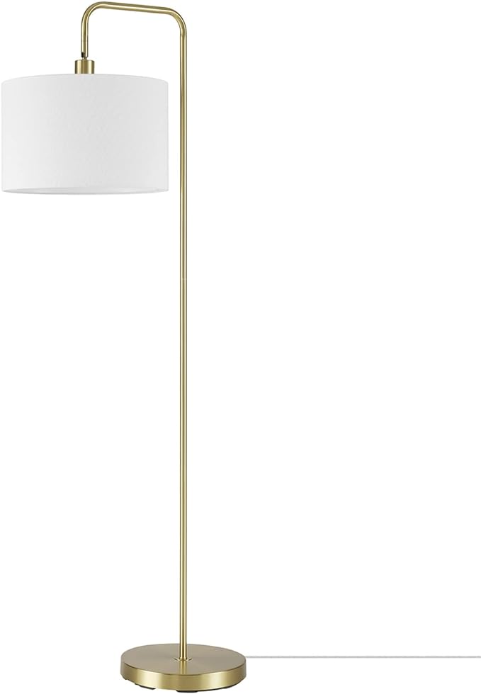 Globe Electric 61000021 58" Floor Lamp, Brass, White Linen Shade, On/Off Rotary Switch on Socket, Floor Lamp for Living Room, Floor Lamp for Bedroom, Home Improvement, Home Office Accessories