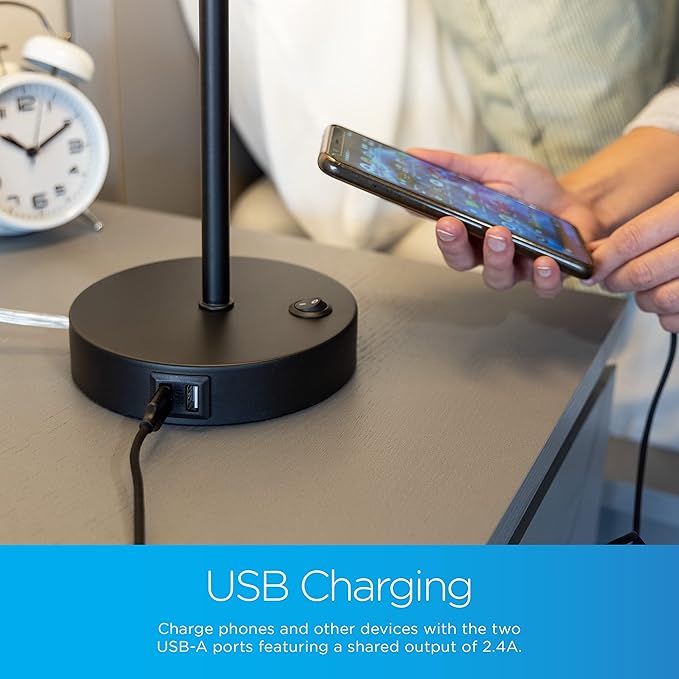 Enbrighten Bedside Decor Lamp Tabletop Wi-FI Dimmable Color Changing Music-Sync 2-Port USB-charging Station 2.4A Dorm Bedroom Home Office Living Room Compatible with Alexa 70331 Black
