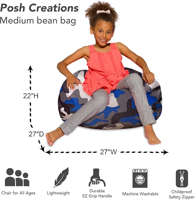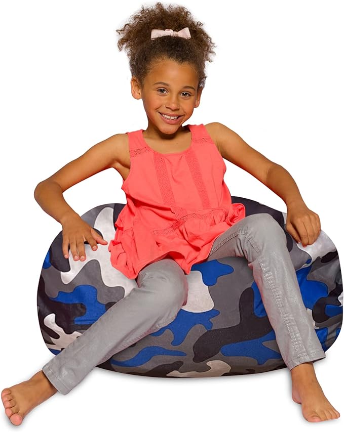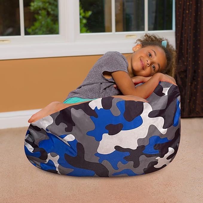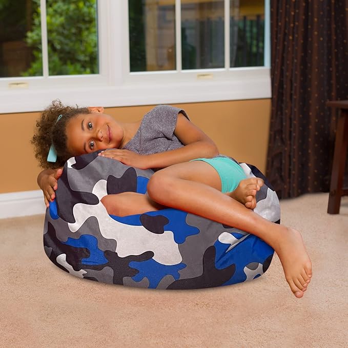 Posh Creations Bean Bag Chair for Kids, Teens, and Adults Includes Removable and Machine Washable Cover, Soft Nylon - Camo Blue and Brown, 27in - Medium