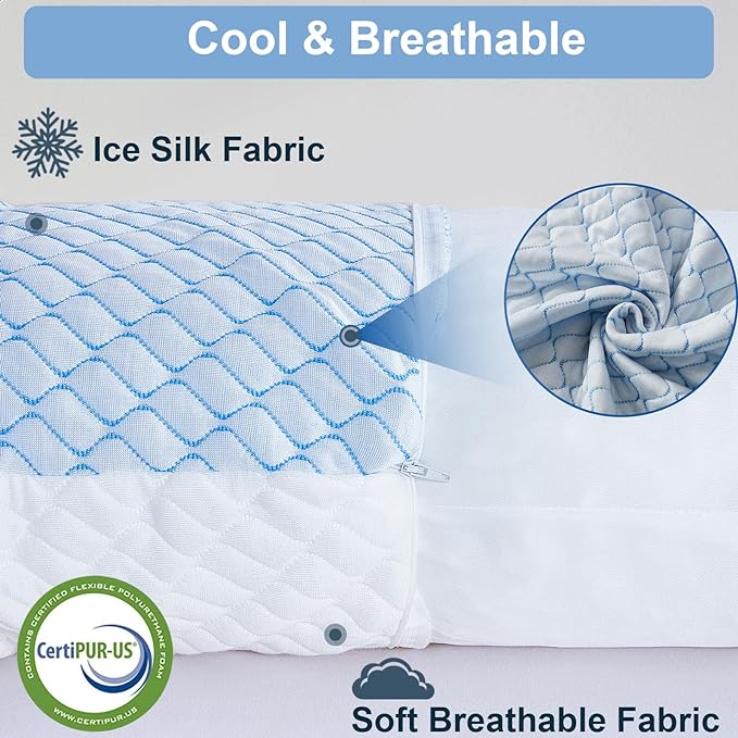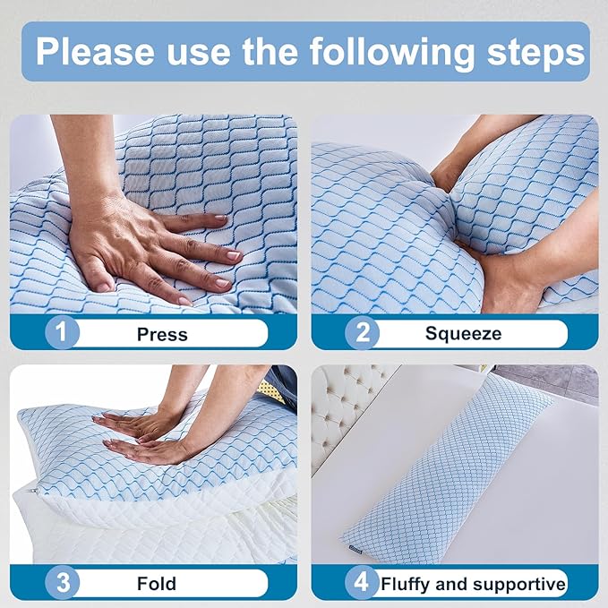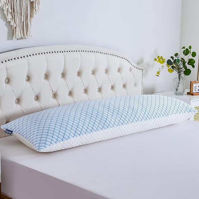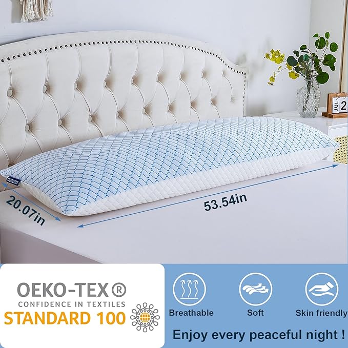 Gehannah Body Pillow for Adults - Shredded Memory Foam & Zippered Cooling Cover - Long Pillow for Sleeping - Bed Pillows for Side Sleeper