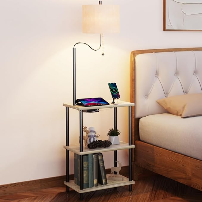 Floor Lamp with Table for Living Room End Table with Lamp Attached USB Type-C Bedside Reading Table with Charging Station Small Nightstand Table Floor Lamp for Bedroom(Bulb Included)