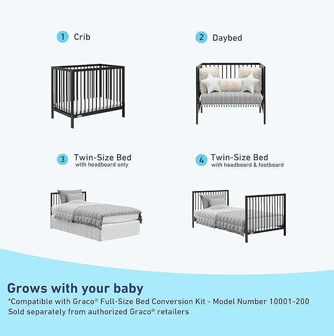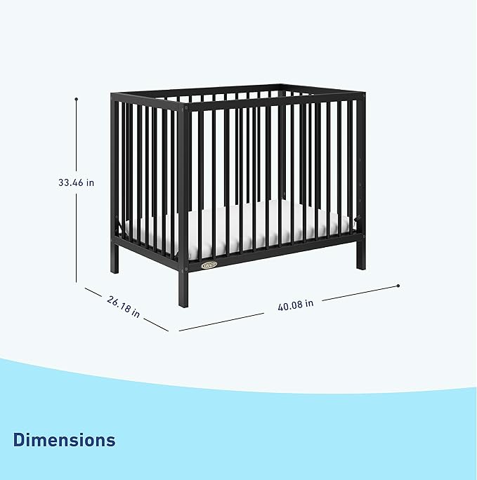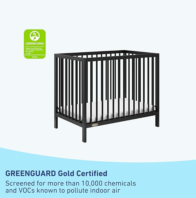 Graco Teddi 4-in-1 Convertible Mini Crib with Bonus Water-Resistant Mattress (Black) – GREENGUARD Gold Certified, 2.75-Inch Mattress Included, Convenient Size, Easy 30-Minute Assembly