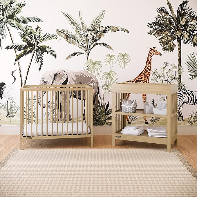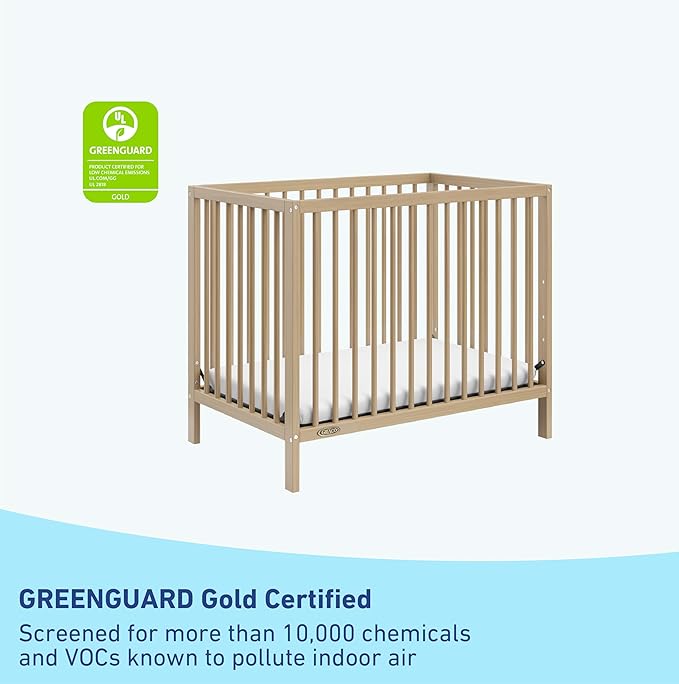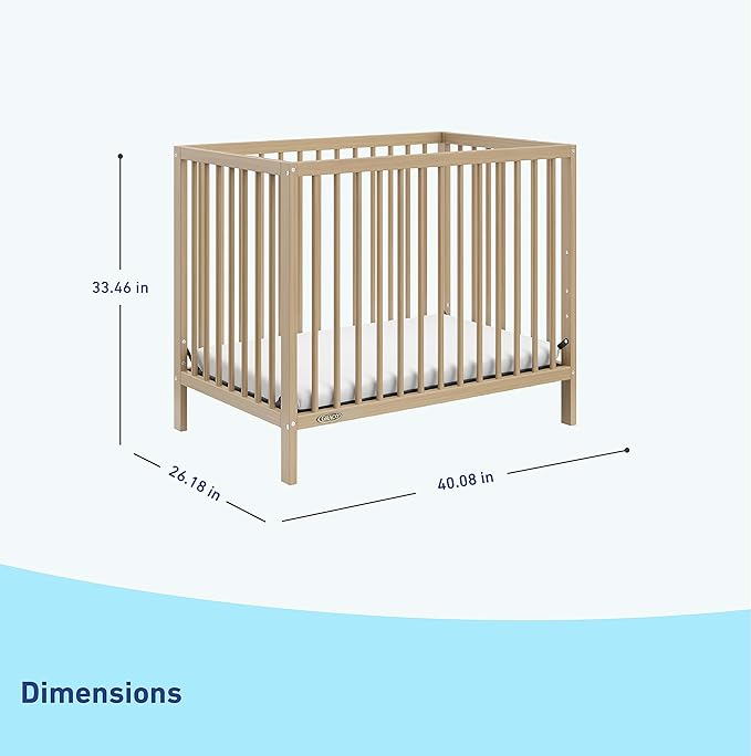 Graco Teddi 4-in-1 Convertible Mini Crib with Bonus Water-Resistant Mattress (Driftwood) – GREENGUARD Gold Certified, 2.75-Inch Mattress Included, Convenient Size, Easy 30-Minute Assembly