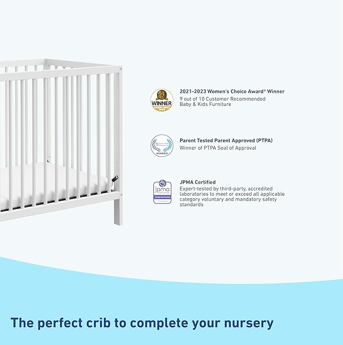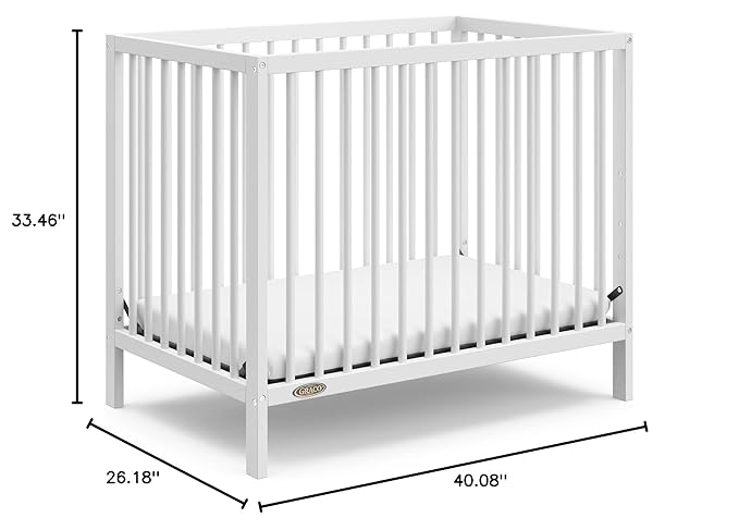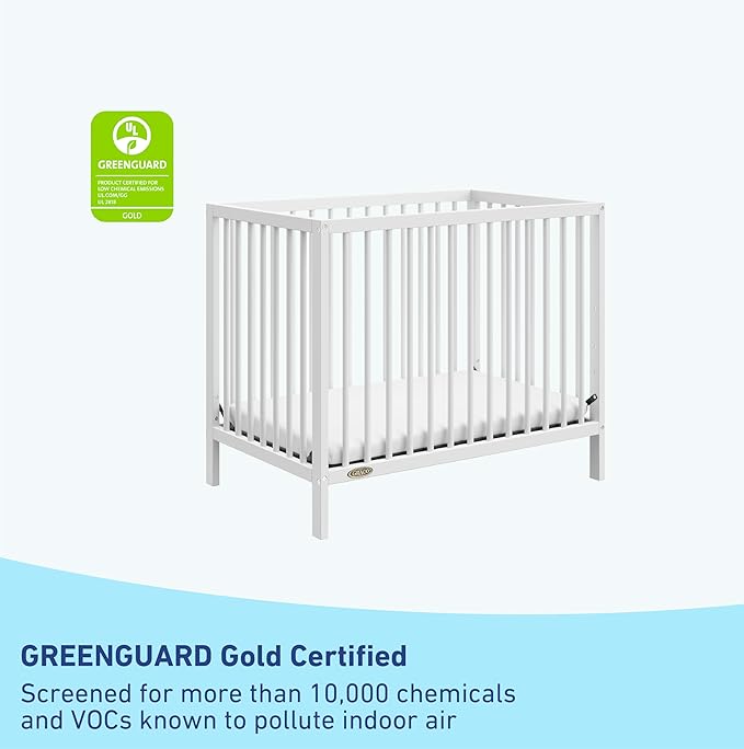Graco Teddi 4-in-1 Convertible Mini Crib with Bonus Water-Resistant Mattress (White) – GREENGUARD Gold Certified, 2.75-Inch Mattress Included, Convenient Size, Easy 30-Minute Assembly