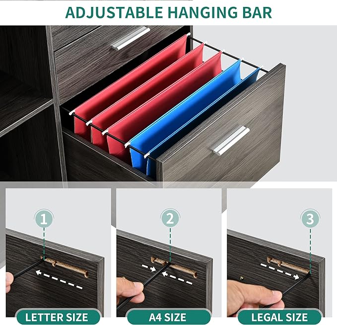 YITAHOME File Cabinet with Charging Station, Mobile Lateral Filing Cabinet with Lock for Home Office, Printer Stand with Open Storage Shelf, Fits A4, Letter, Legal Size Files, Office Furniture, Grey