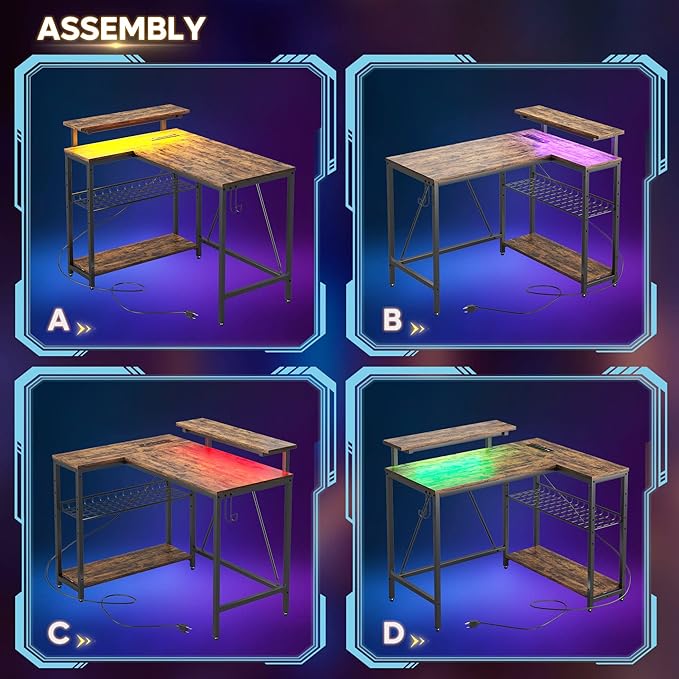 About This 【Gamer Desk with Power Outlet】 Bestier Gaming l shaped desk features 4 AC outlets + 2 USB charing...