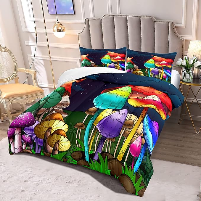 About This 【Unique design】: Mushroom Print Queen Size Bedding Set Cartoon Mushroom Pattern Kids Bedding Set. Our Comforter Sets in...