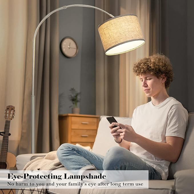 Arc Floor Lamp, Modern Floor Lamp for Living Room with Adjustable Head, Tall Pole Lamp with On/Off Pedal Switch, Over Couch Arched Tall Standing Light for Reading, Bedroom, Office (Silver)