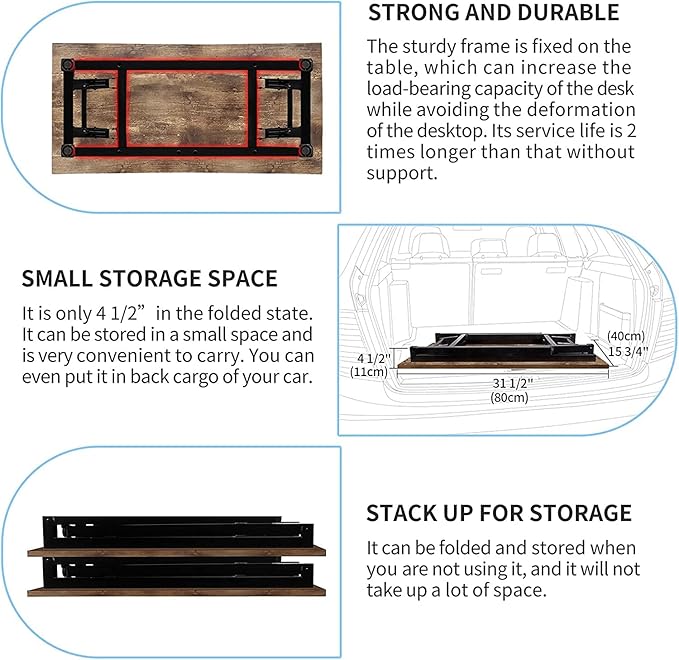 Need Small Desk 31 1/2" No Assembly Foldable Writing Table,Sturdy and Heavy Duty Folding Computer Desks for Small Space/Home Office/Dormitory AC5FB(80 * 40)