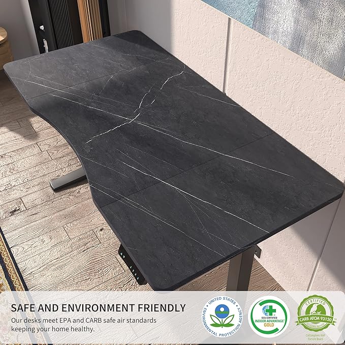 Monomi Height Adjustable Electric Standing Desk, 55 x 28 Inches Stand up Desk, Sit Stand Home Office Computer Desk(Black Frame+Marble Black Top)