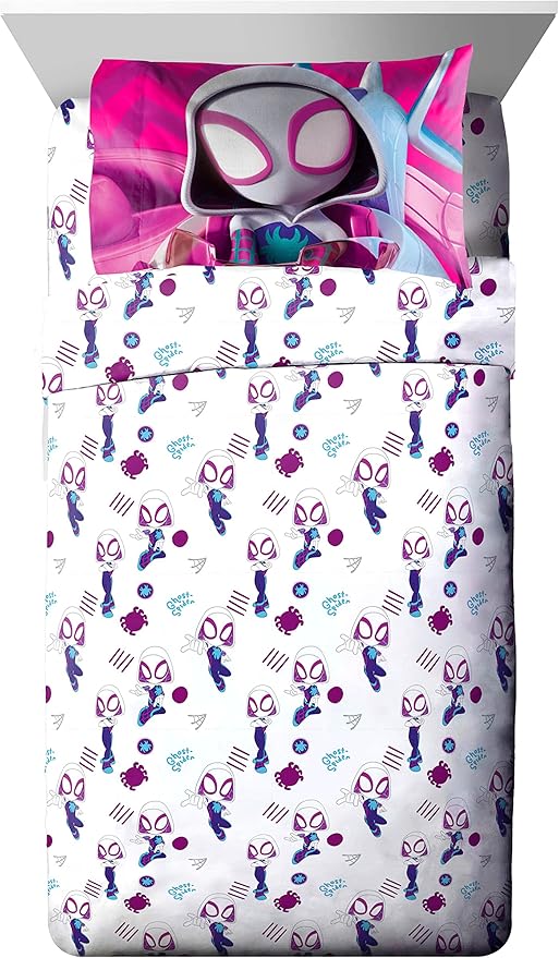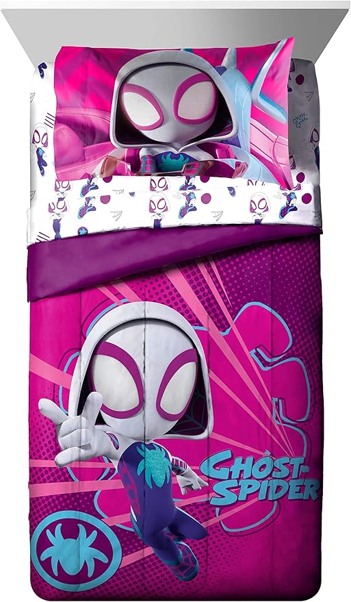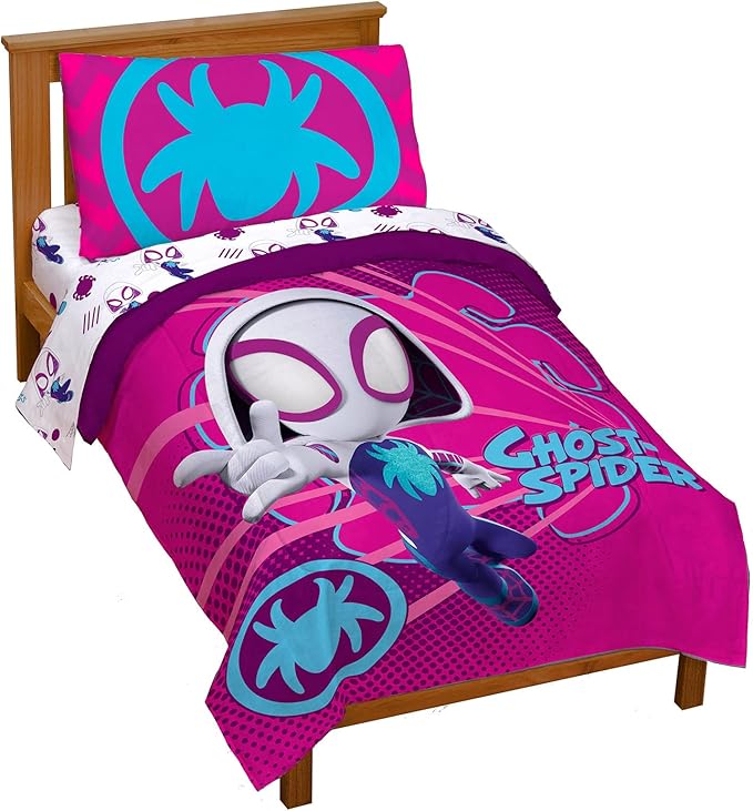 Marvel Spidey & His Amazing Friends Ghost Spider Gwen 4 Piece Toddler Bed Set - Bedding includes Comforter & Sheet Set - Super Soft Fade Resistant Microfiber